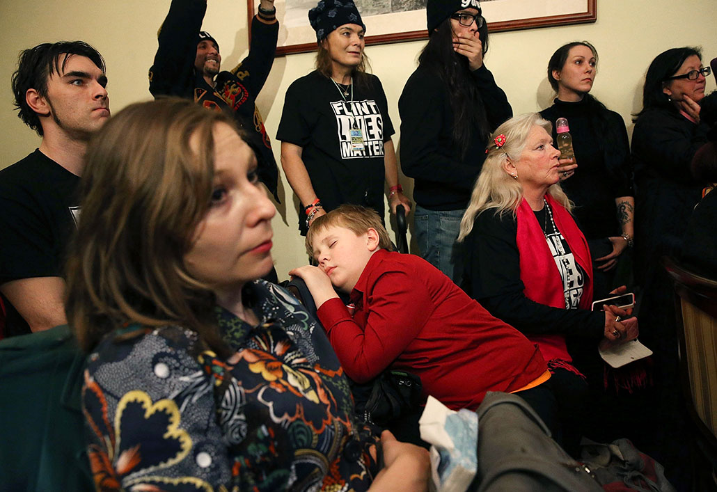 Community members took part in a mile-long protest march in Flint in 2016. Their goal was to highlight Flint’s water crisis and get clean water for the city’s residents.