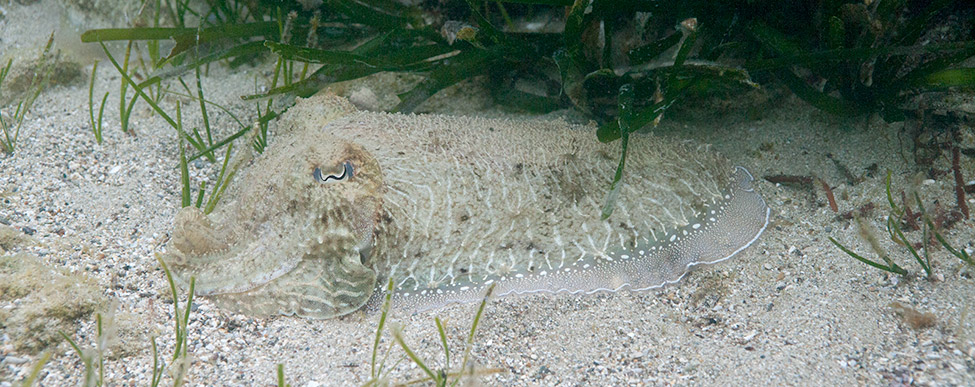 Can you spot the cuttlefish? A common European cuttlefish camouflages itself on the seafloor.