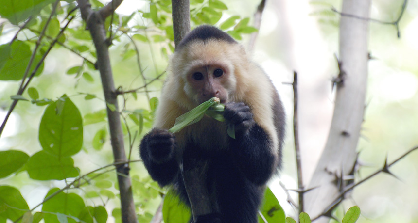 The researchers chose to follow a type of capuchin monkey known as Cebus capucinus. The reason: They already knew these monkeys were adept at finding bugs.