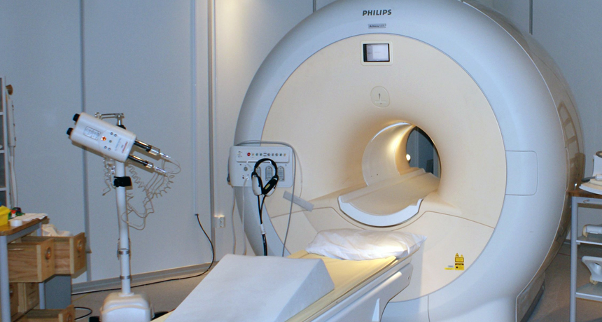 In a hospital MRI machine, the body part to be scanned is placed in a strong magnetic field. This aligns the magnetic fields of individual protons in molecules throughout that body part being scanned. The fields of these protons will now point in the same direction. Then, the MRI directs radio waves at the body part. Those protons absorb these waves and send them back out — but at a different frequency. (Frequency is measured as the number of waves per second.) When the radio waves shut off, the protons’ magnetic fields return to normal. The scanner uses the shifts in frequencies to create a detailed map of the tissues that had been scanned.