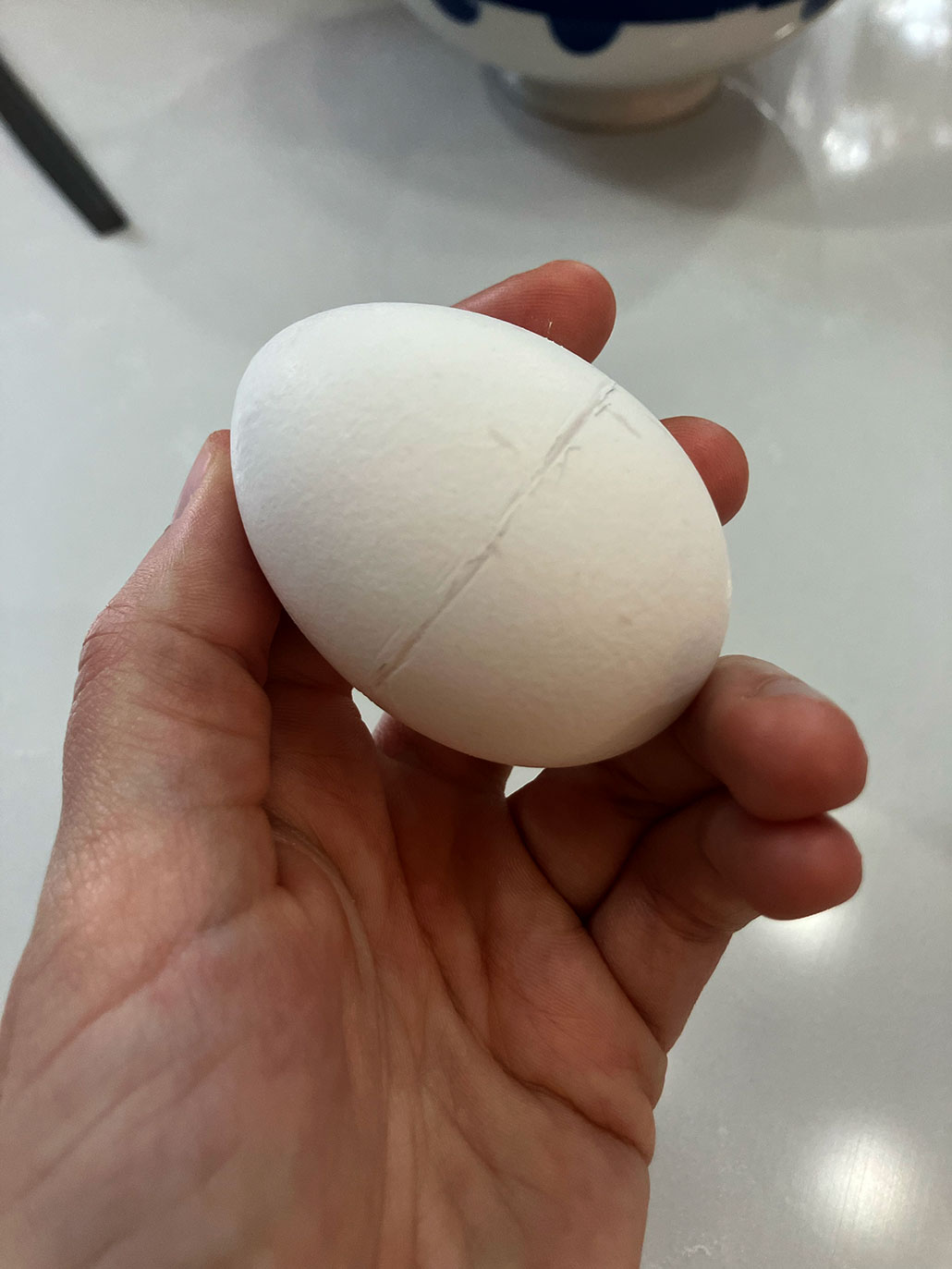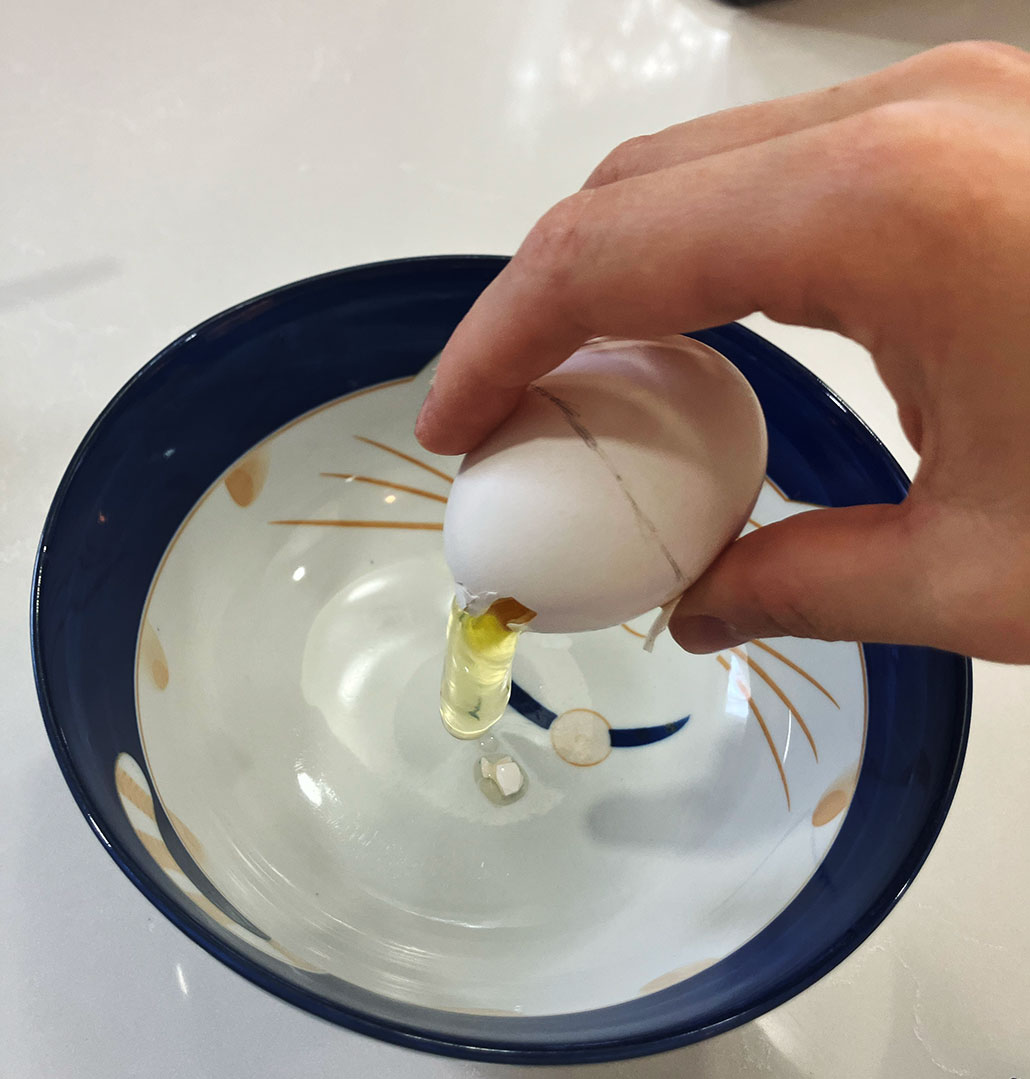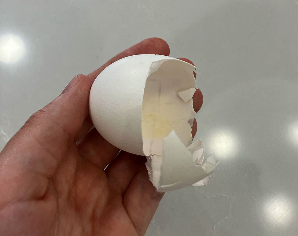 - Note: It is okay if the edge is a little jagged, but if big chips or hairline cracks develop that go into the more rounded half of the egg, you will want to start over (from step 1) with a fresh egg.