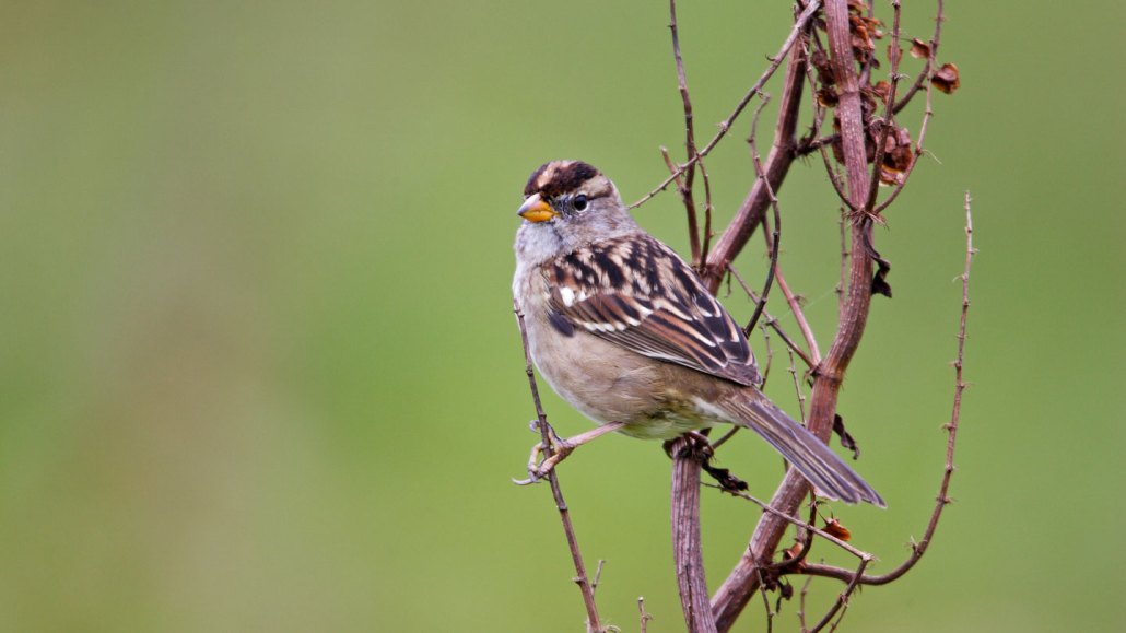 This sub-species of sparrow migrates from breeding grounds in Canada and Alaska down to warmer wintering grounds in California and Mexico. From years of observation, biologists have learned that these sparrows are solitary migrators. Rather than migrating in flocks, each bird takes off on his or her own and navigates his or her own route between the breeding and wintering grounds. This includes the juvenile birds who are hatched in the breeding grounds and need to find their way to wintering grounds that they’ve never seen before, without a parent’s help!