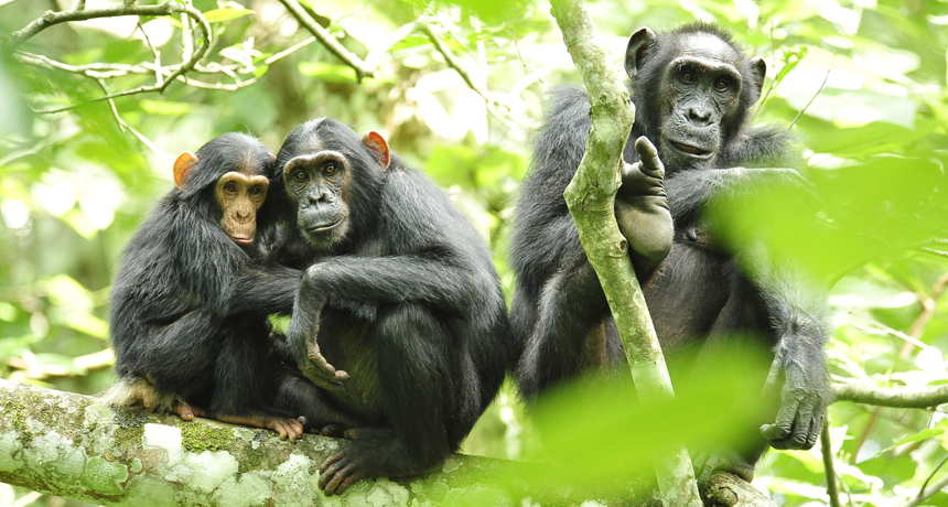 Chimpanzees living in Africa, where scientists believe a chimp first passed the virus that became HIV on to a person.
