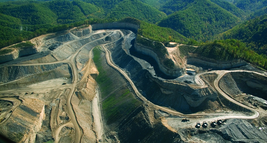 Mountaintop coal mining, as seen here in West Virginia, has been excavating and hauling away the rock that used to top many area mountains. This is just one way that humans are reshaping the environment.