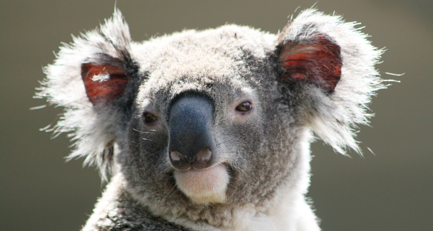 The size of an animal’s voice box and its flapping vocal cords dictate the range of pitches that an animal can make. For a typical 8-kilogram (17.5-pound) male koala, its voice should fall within the near-soprano range of any animal choir. Yet the male’s mating songs include very low bellows — tones usually created only by elephant-sized mammals. Although these tones may make a female koala swoon, to the human ear, the low-pitched sounds resemble only a string of belches and snorts.