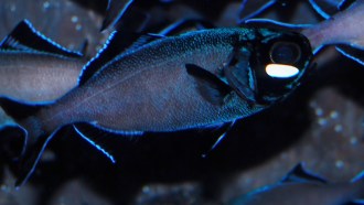 This glow can serve different purposes. Animals such as fireflies glow to attract mates. Others, such as the glass squid, emit light from under their eyes that makes them invisible to hungry predators below. Undersea tube worms produce mucus that glows on its own. That slime can mark predators with a sticky blue glow for days and serve as a “burglar alarm” if the predator comes near again. And bacteria in the ocean might light up just to hitch a ride. They can get swallowed by a larger animal for a free trip across the sea.