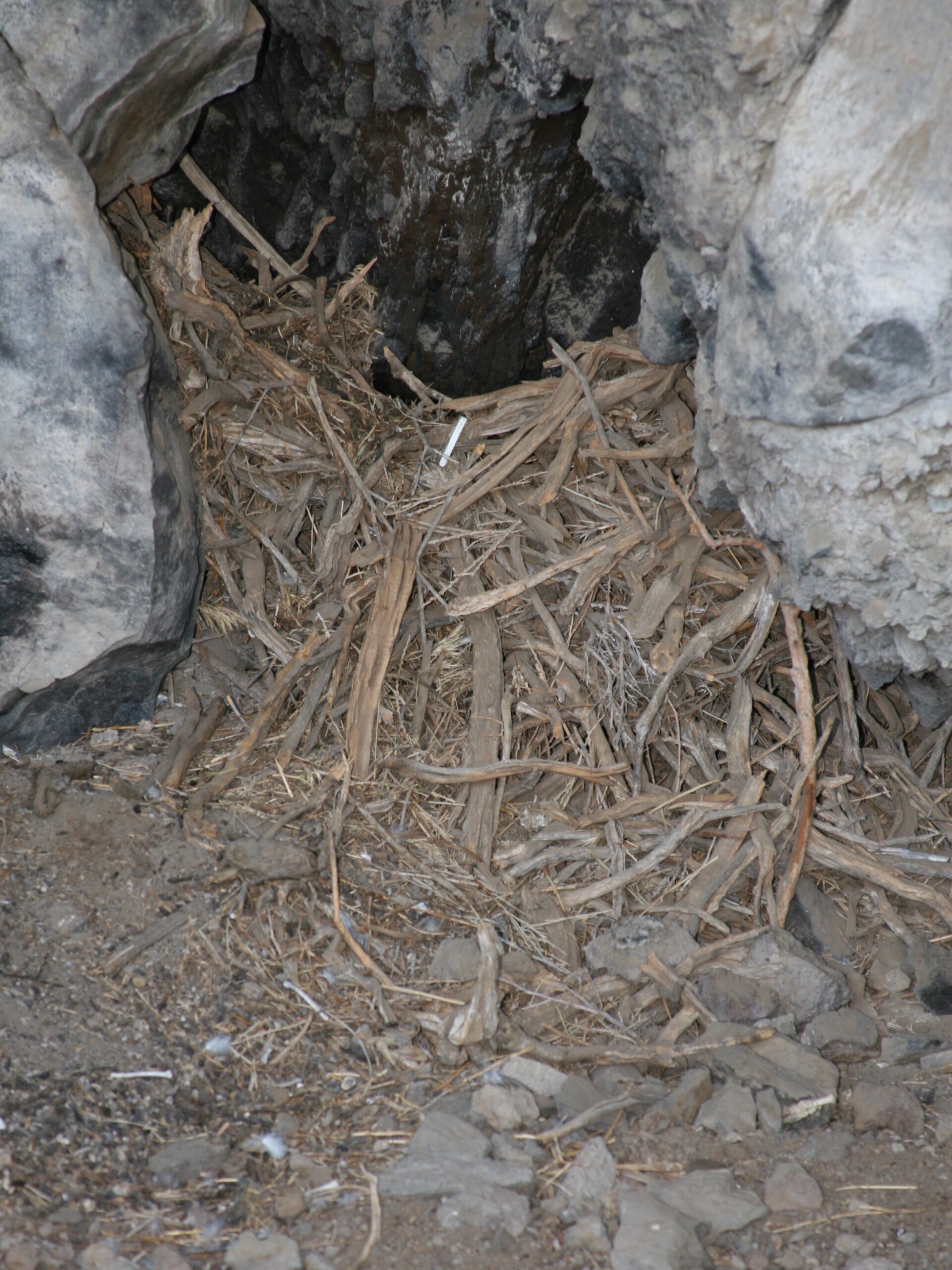 Pack rats still live around La Brea, although the midden that sank into the seep obviously doesn’t have current tenants. The midden inside the Paisley 5 Mile Point Caves, though, still has plenty of rats. And they’re still stealing, Jenkins says.