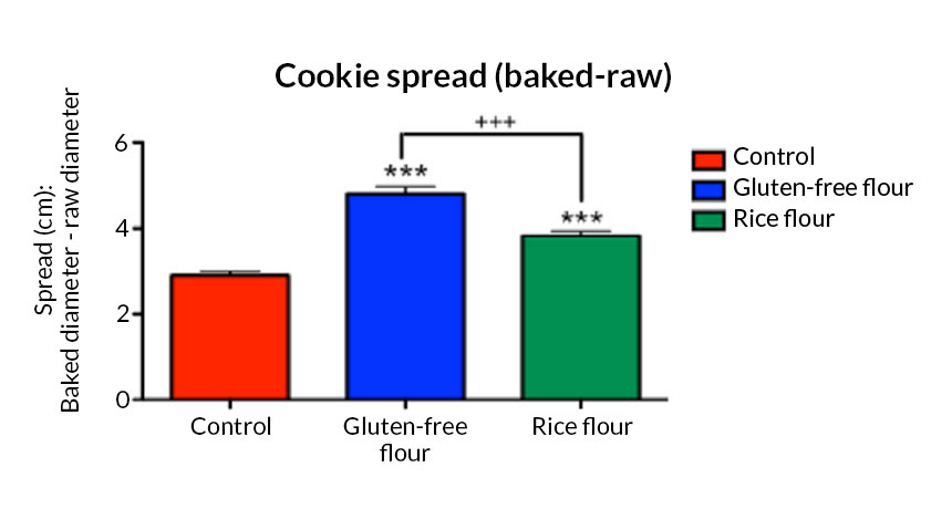 This graph shows how much cookies spread when baking. The x-axis identifies what’s in each cookie type.