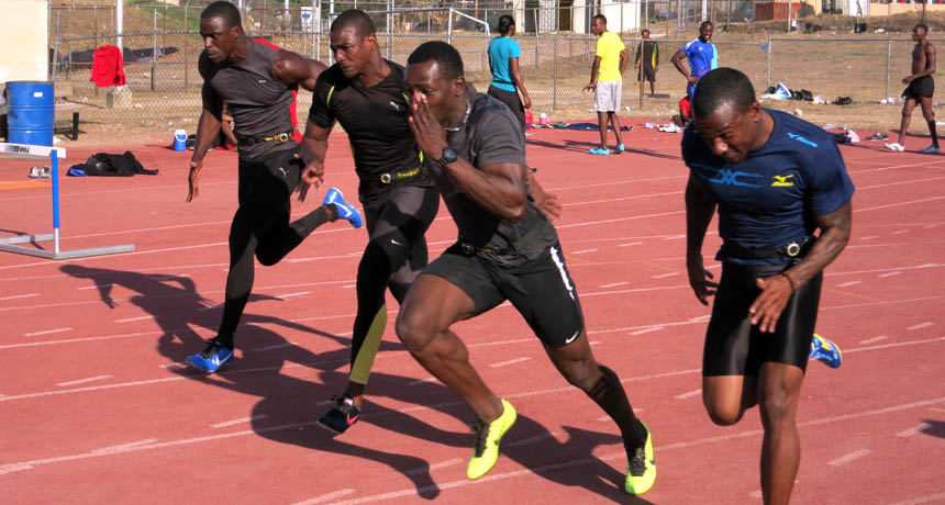 Elite sprinters from Jamaica participate in a research study. It found that symmetrical knees appear to make running more efficient.