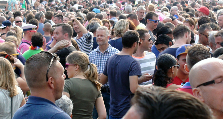 Some people who are developing hearing loss can interpret speech fine in a quiet setting. But they can have trouble understanding speech in a crowd, as here. And that was the basis for one new hearing test.