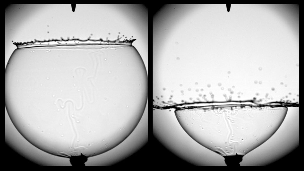 surface tension: The surface film of a liquid caused by the strong bonds between the molecules in the surface layer.