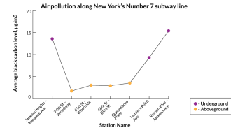 Soot levels in stations for New York City’s electric subway trains exceed the levels outdoors, a new study finds. The underground source of this black carbon: maintenance trains that share the tracks with subway trains. Breathing soot can aggravate asthma and other lung disease.