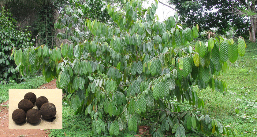 African walnut trees, Coula edulis, are common in Nigeria. The nuts (inset) taste good and, as two teens found, might prevent bad breath.